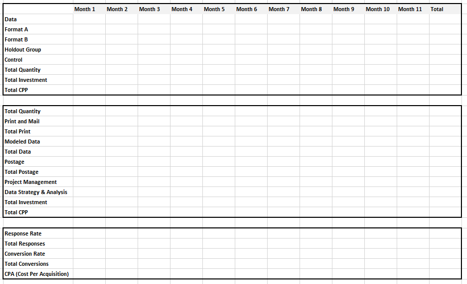 - Run a Proforma Analysis: Conduct a proforma to evaluate the potential ROI for different mailing formats and target audiences. This will help align your budgeting decisions with your campaign goals.