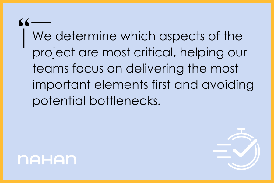 - Prioritization: We determine which aspects of the project are most critical, helping our teams focus on delivering the most important elements first and avoiding potential bottlenecks.