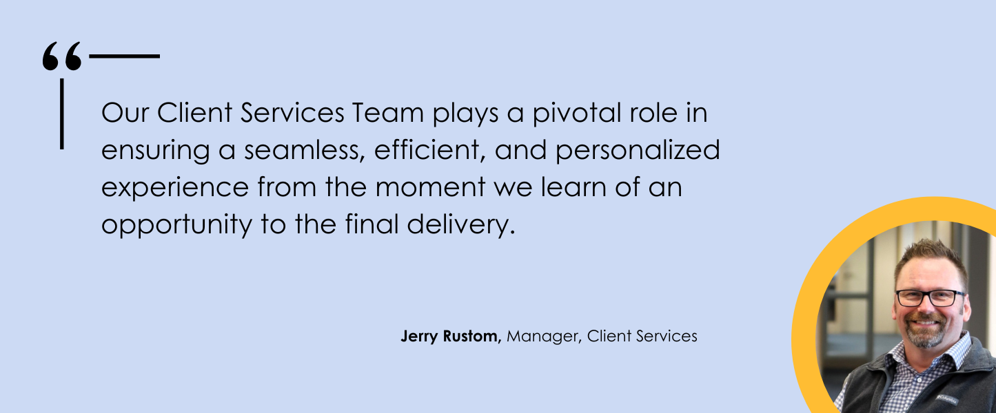 Our goal is simple: to make sure our clients get what they need, how they need it, and when they need it—every time. Whether it’s a complex or straightforward project, our Client Services Team is here to ensure that everything goes smoothly, and that our clients are fully satisfied with the final result!