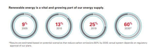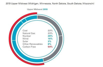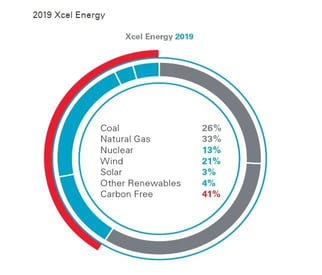 There are a number of renewable resources that Xcel utilizes for its power supply including wind and solar. See below for a breakdown of energy sources. Right now, in the Upper Midwest (where Nahan headquarters is located), 54% of Xcel’s power supply is carbon free, which is higher than the national average.