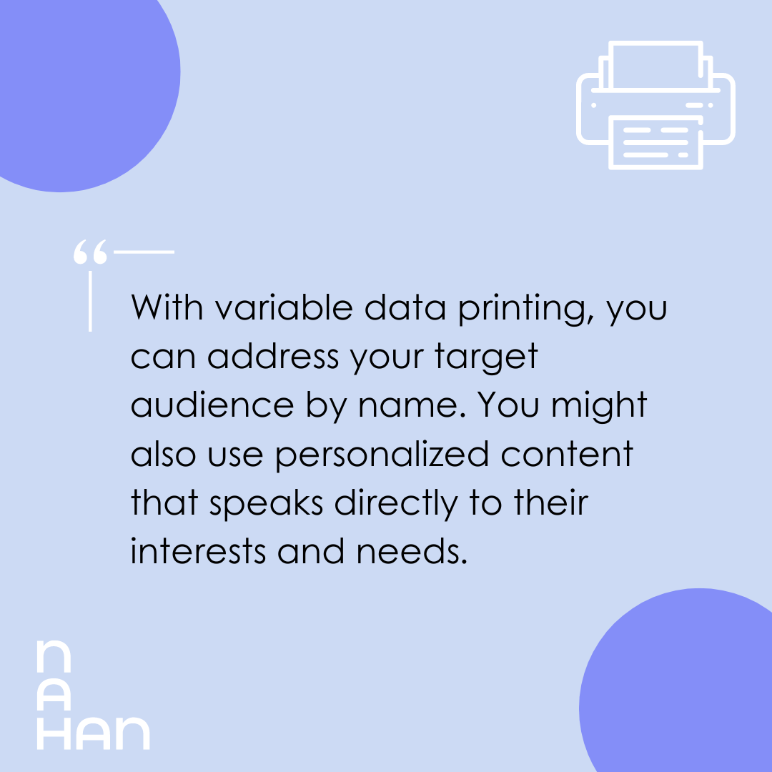 Generic greetings like “Dear Customer,” are outdated with today’s technology. With variable data printing, you can address your target audience by name. You might also use personalized content that speaks directly to their interests and needs.